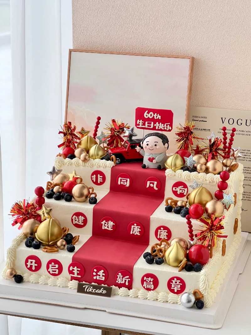 三层祝寿主题翻糖鲜奶蛋糕-乐鱼app