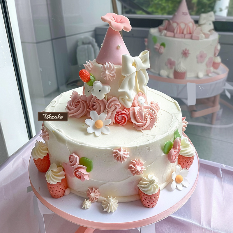 内层蛋糕胚 奶油(含水果果肉)叠加,表层奶油,翻糖皮等装饰