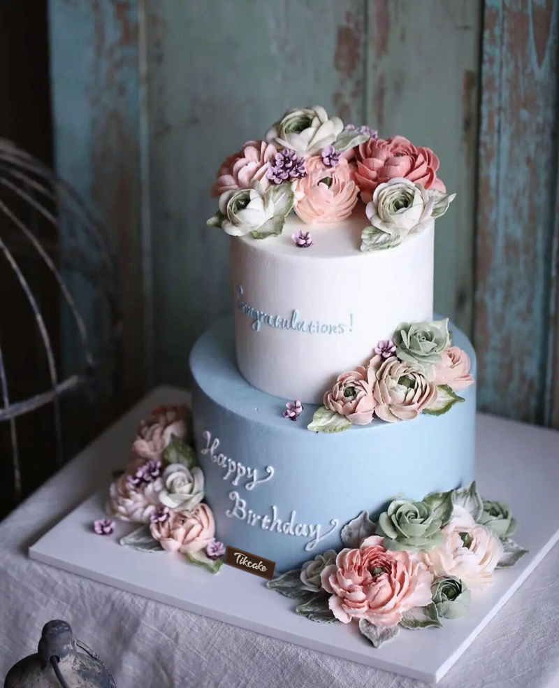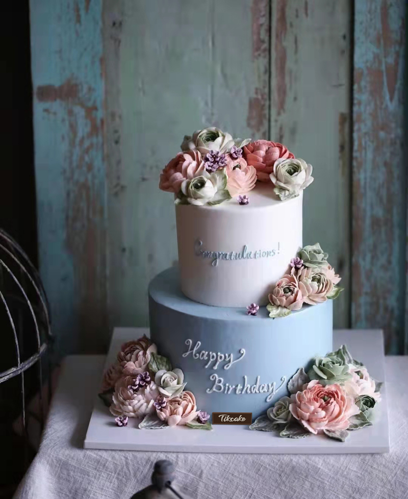 高颜值韩式裱花双层蛋糕-乐鱼app