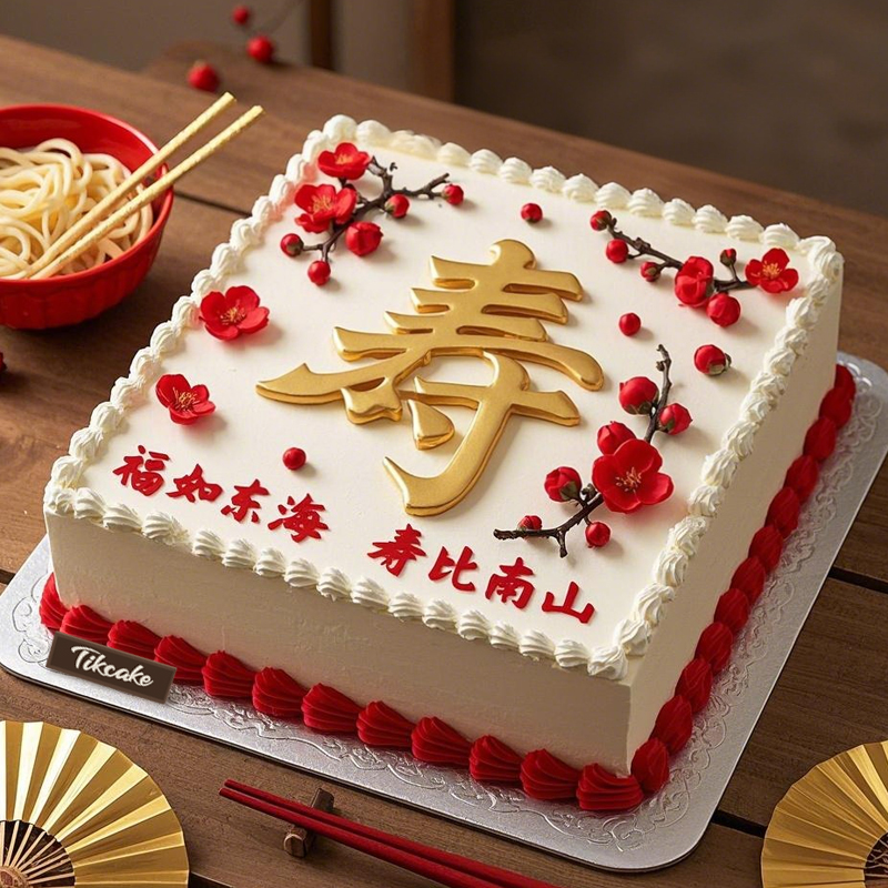 原创祝寿主题方形翻糖鲜奶蛋糕-乐鱼app