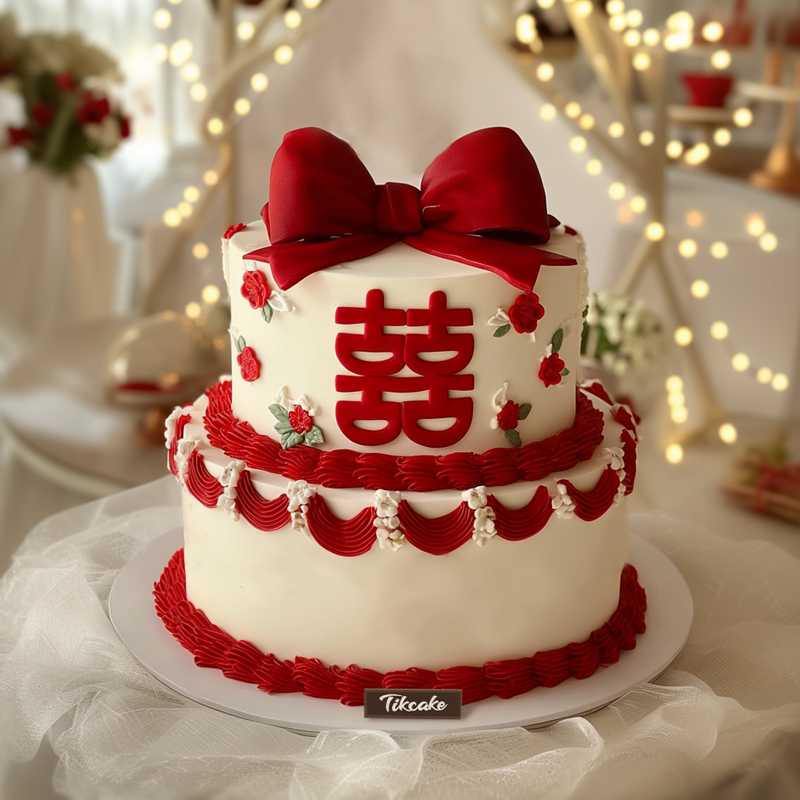 原创双层婚庆主题翻糖鲜奶蛋糕