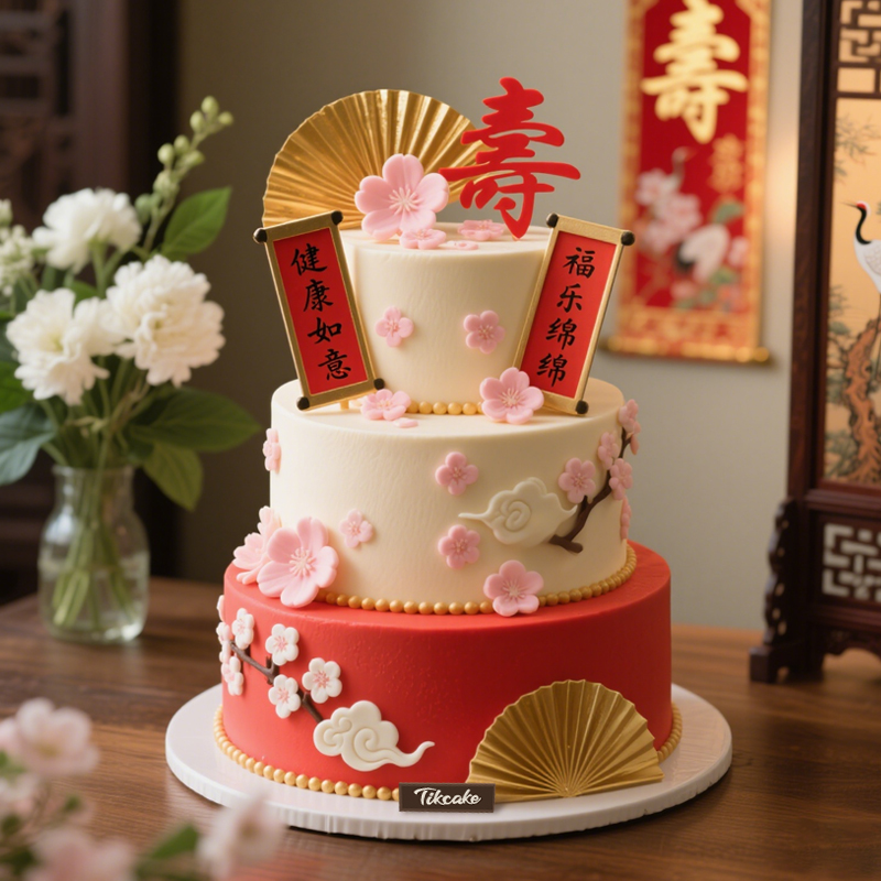 原创祝寿主题三层鲜奶蛋糕-乐鱼app