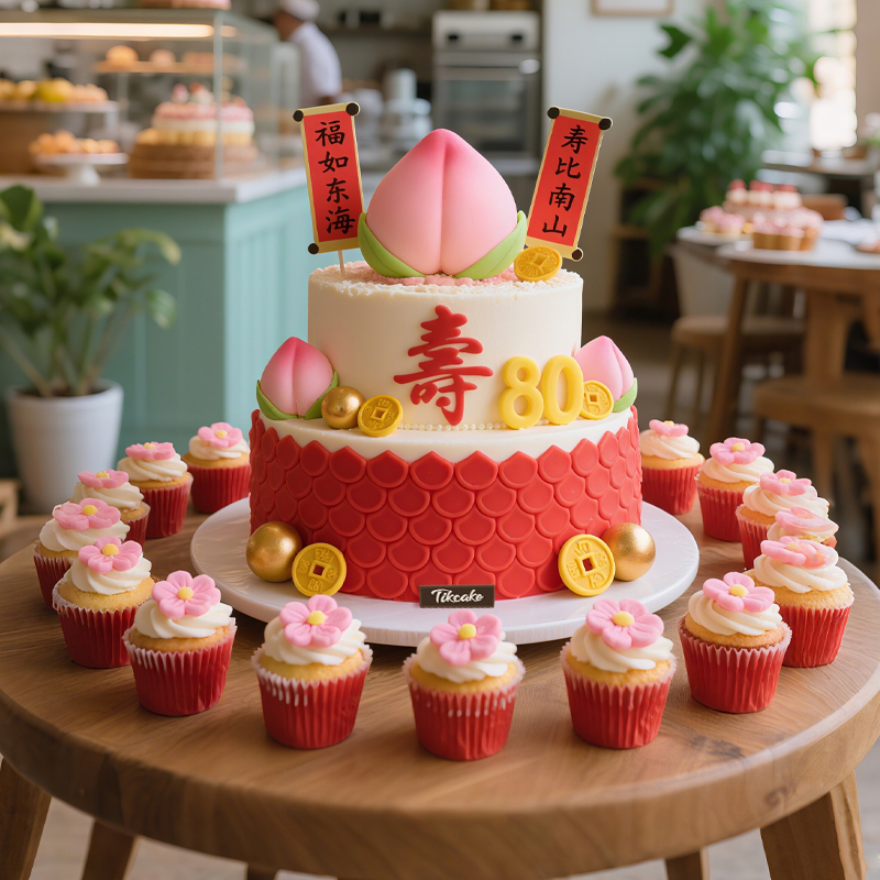 原创祝寿主题双层鲜奶蛋糕(含14个纸杯蛋糕)-乐鱼app