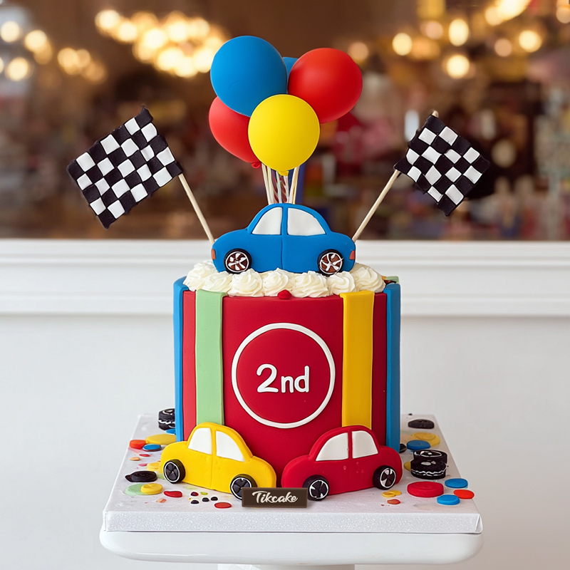 原创小汽车主题儿童翻糖鲜奶蛋糕