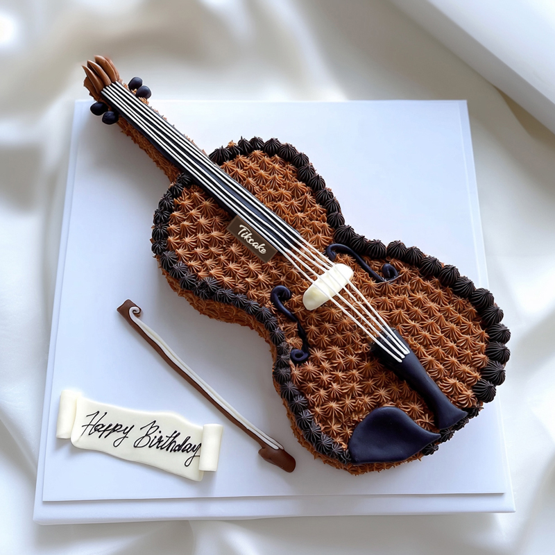 原创小提琴主题巧克力翻糖鲜奶蛋糕