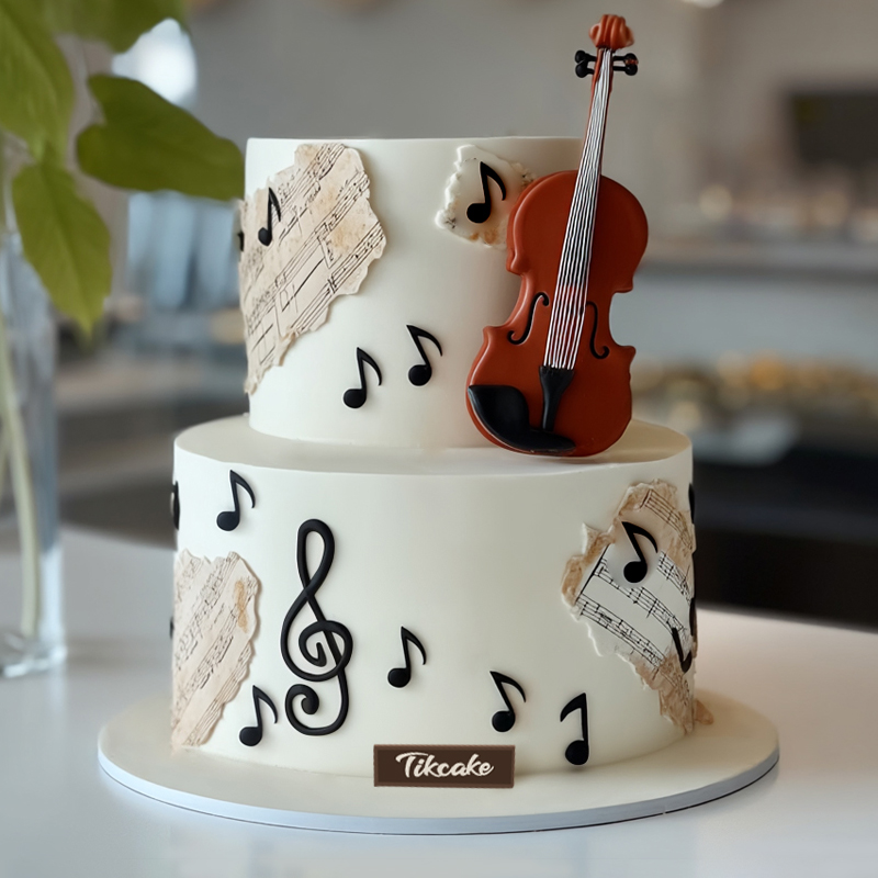 原创小提琴主题双层翻糖鲜奶蛋糕-乐鱼app