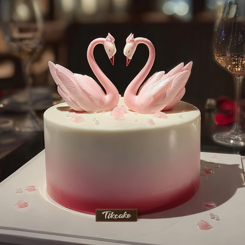 原创天鹅恋人主题翻糖鲜奶蛋糕