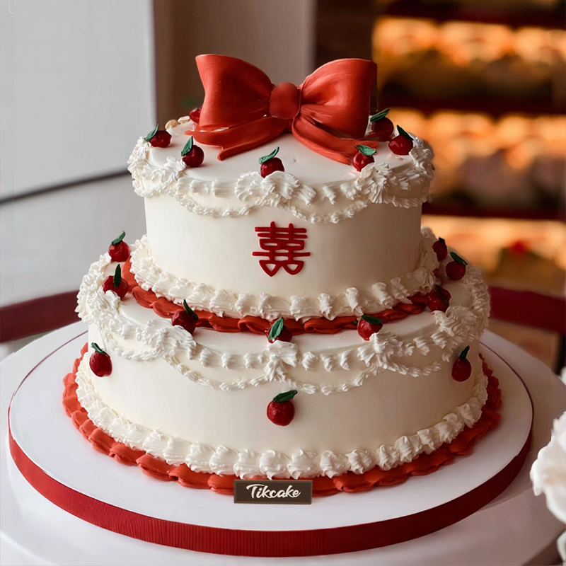 原创婚庆主题双层翻糖鲜奶蛋糕-乐鱼app
